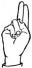 На ћирилици написано ДАРИО МЕЋАВА састоји се из 11 слова [?]. Исписано ћириличном једноручном азбуком за глувонеме: